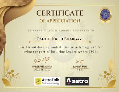 Astrologer Pandit Krish BhargavPandit Krish Bhargav is an famous astrologer that has dedicated his life to help people. He is an astrologer who listens to every person and makes him or his to use astrology. He makes people to take best advantages of the astrology. his true knowledge of the astrology has attracted people towards him. He is serving people around the world with his remedies. The best thing that people around the world now prefer to consult him for his suggestions. He wishes that every person could experience smooth life. He makes every person to achieve what He or He wants to.
