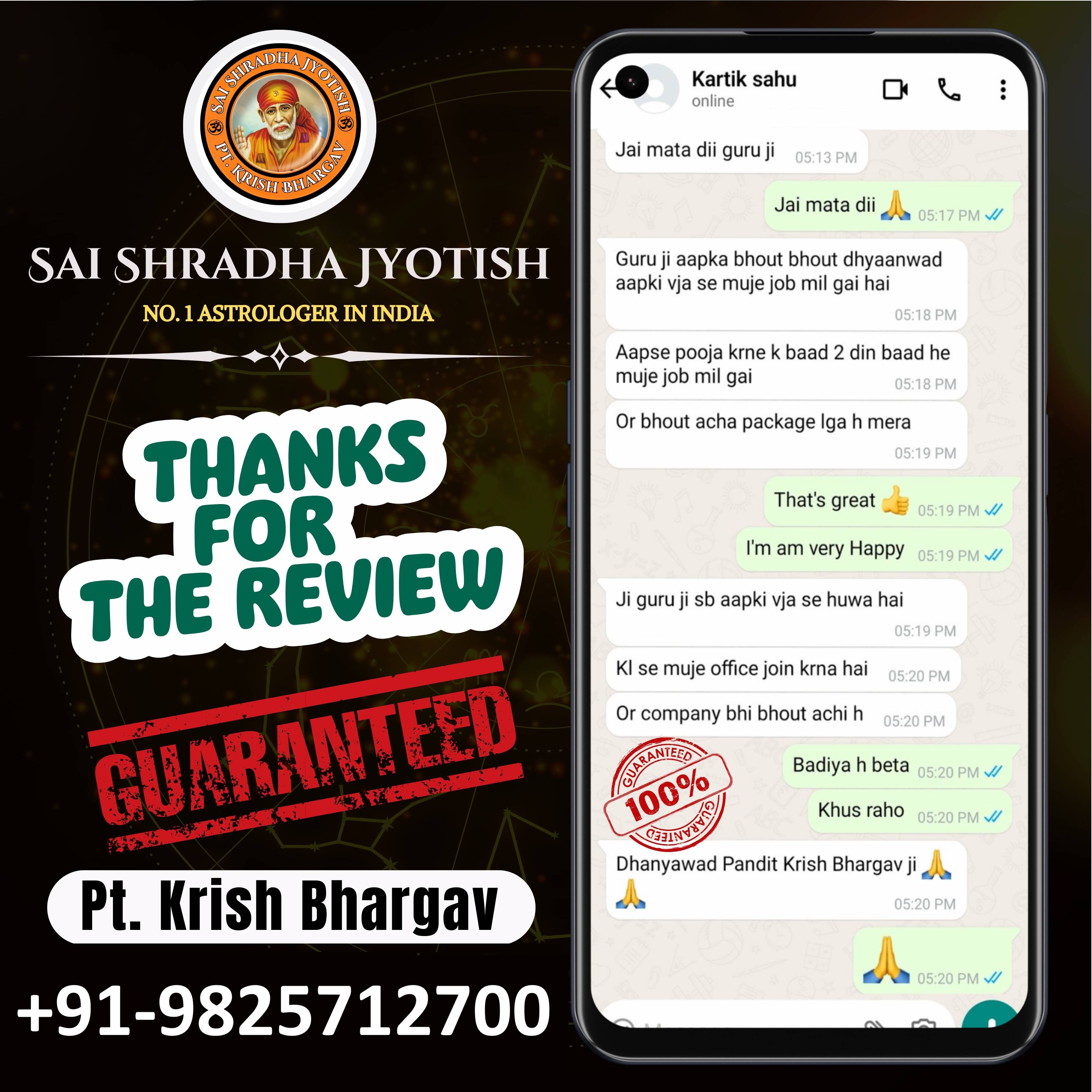For my business-related important decisions and problems, I always consult Pandit Krish Bhargav . He always suggests me a suitable solution and his astrological advice always brings success to my business.
