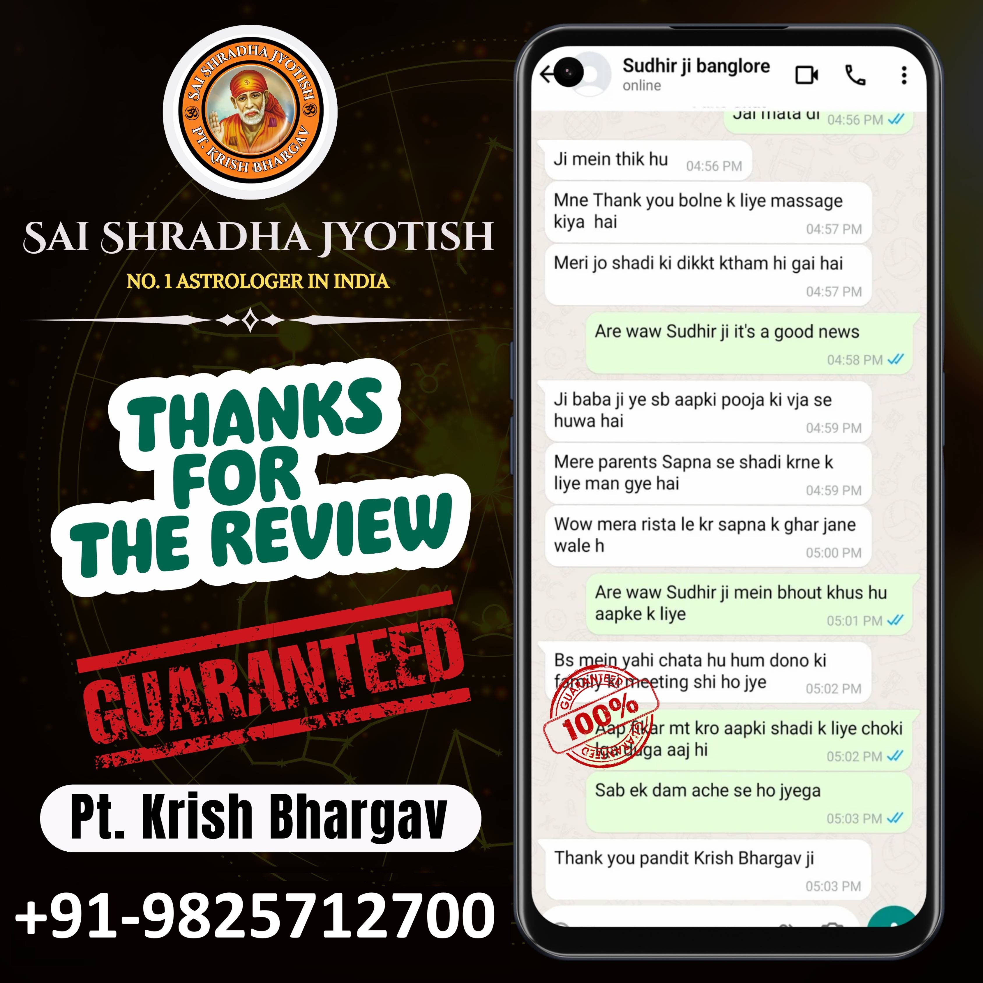 Pandit Krish Bhargav has helped me with my love issues. He is a genuine person that understands my problem and helps me to soon get married to my lover.